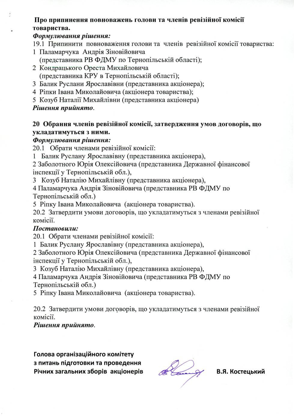 Оголошення про результати річних зборів